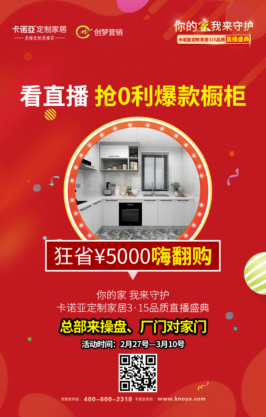 PS: 最新上線的「卡諾亞3.15品質(zhì)直播盛典—在線搶工廠,直播搶福利」,足不出戶定制夢(mèng)想廚房,爆款廚柜直降¥5000,更有機(jī)會(huì)搶巨額百萬紅包雨,抽取家紡、床墊、電子秤等各類大獎(jiǎng)喔~