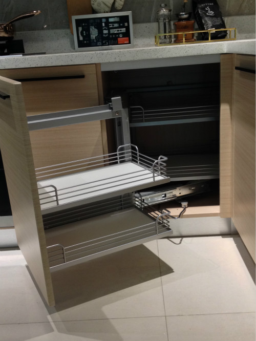 裝修過的業(yè)主表示,選部分柜子改成拉籃非常有必要,尤其有助于增加廚房收納。比如灶臺(tái)下改成碗碟拉籃,吊柜中加裝下拉拉籃,櫥柜轉(zhuǎn)角處裝怪物拉籃等,都是非常劃算的一筆投入。