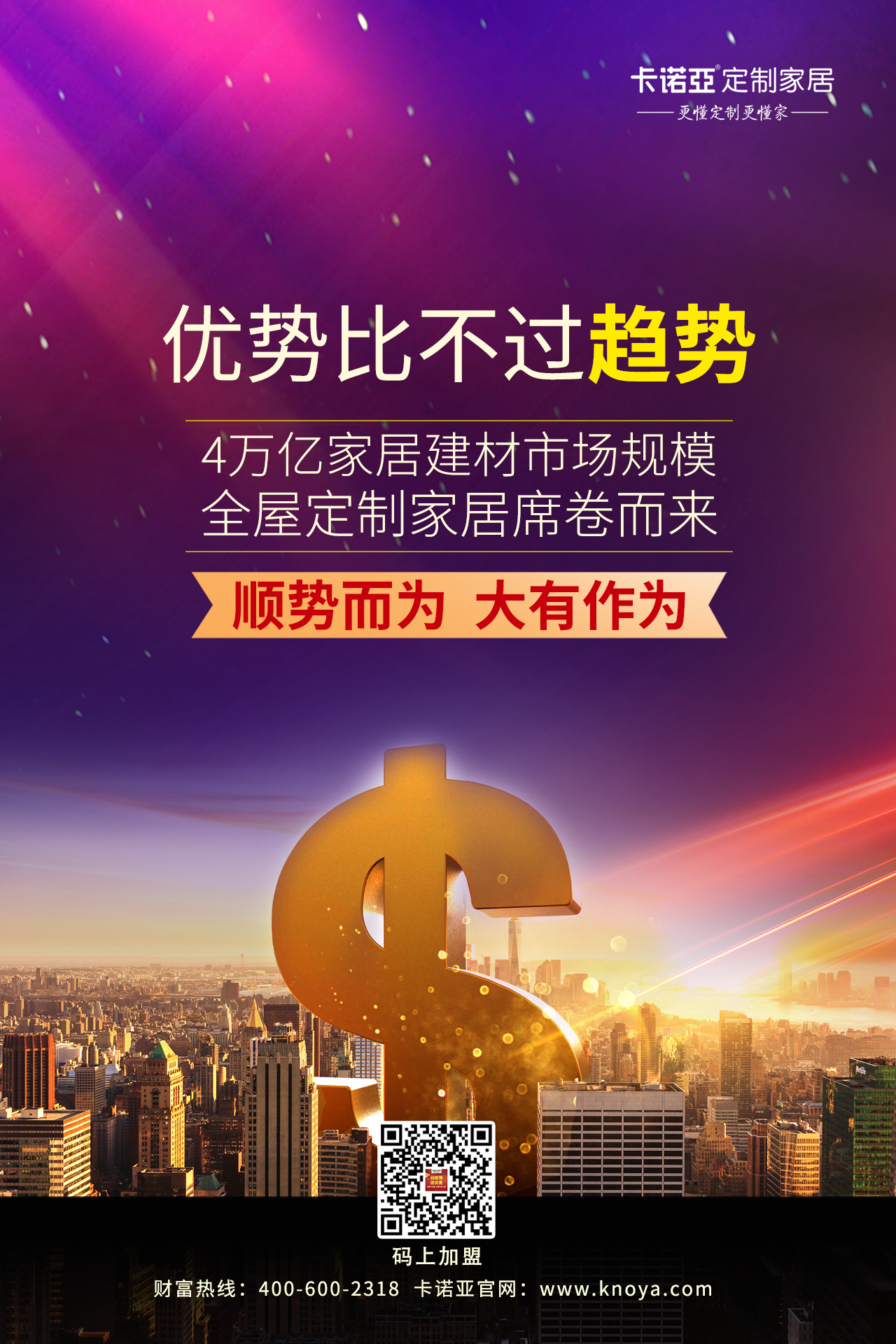 跟上時(shí)代趨勢,對創(chuàng)業(yè)者而言就是“選對一個(gè)行業(yè),成就一種高度”;發(fā)揮個(gè)人優(yōu)勢,就是眾所周知的“選對一個(gè)品牌,成就一生事業(yè)”。7月8-11日到廣州建博會(huì)卡諾亞展位A區(qū)4.2-20,選更懂定制更賺錢的“卡諾亞”, 趨勢+優(yōu)勢兼得,看大牌、做大商,就等你來。