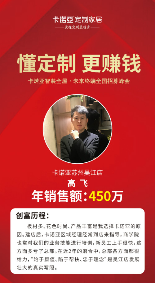 想要加盟全屋定制品牌賺錢,以上三點是非常關鍵的因素,希望大家能對此有所了解。加盟全屋定制選擇卡諾亞定制家居,作為中國至早的定制家居品牌,準上市公司,行業生產規模前五,產品涵蓋5大基材、6大空間、7大風格及20個系列,有足夠的運營經驗和資本,有系統的管理模式和營銷體系,能夠給予專賣店專業的市場指導和營銷建議,讓終端經銷商更具戰斗力,盈利有保障。