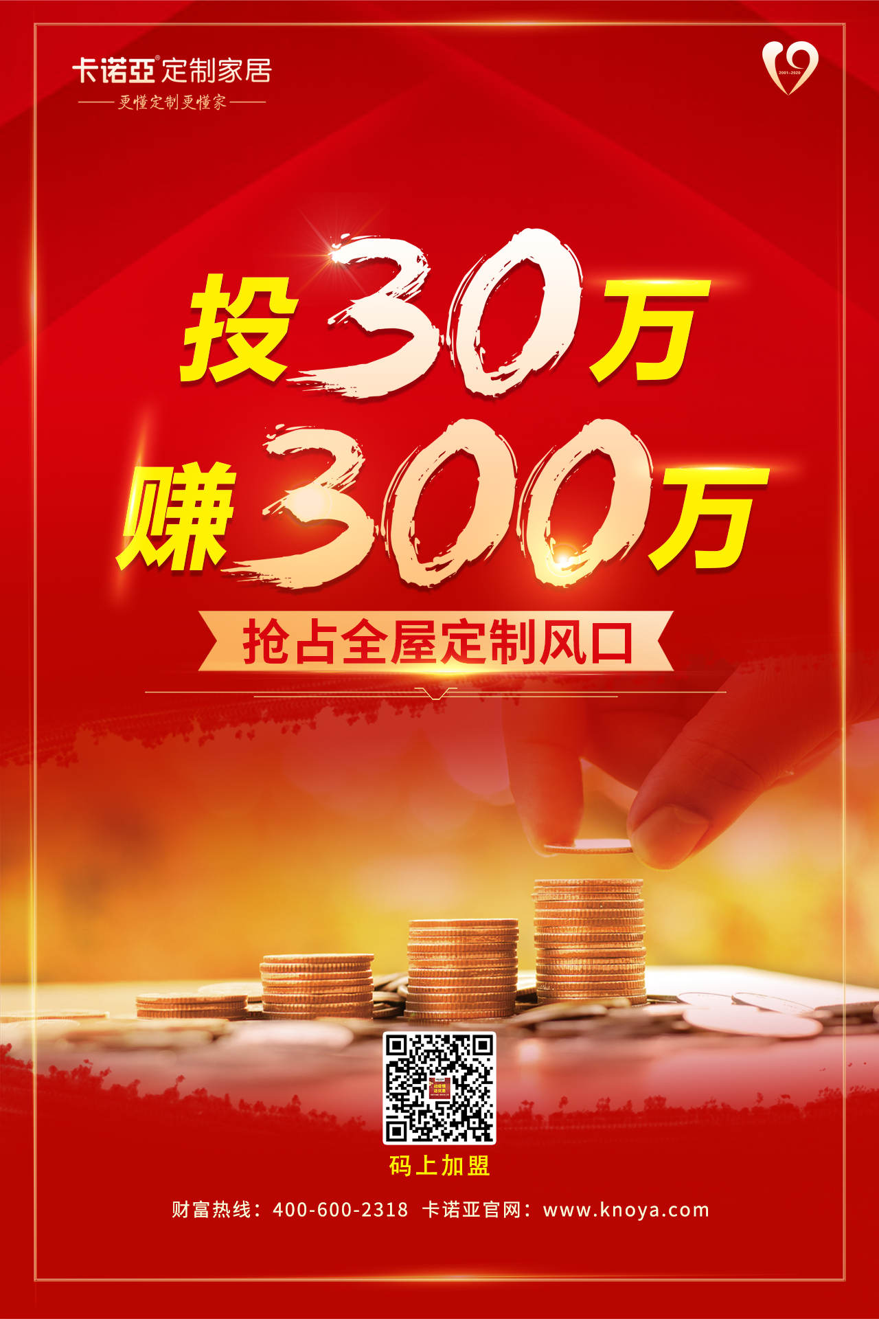 未來幾年,對于每個(gè)企業(yè)來說,將是充滿商機(jī)與挑戰(zhàn)的時(shí)期,可以肯定的是,全屋定制將會以穩(wěn)健的速度發(fā)展,對于加盟商來說,此時(shí)加盟適合自己的品牌,開創(chuàng)事業(yè)與財(cái)富新天地正當(dāng)時(shí)。