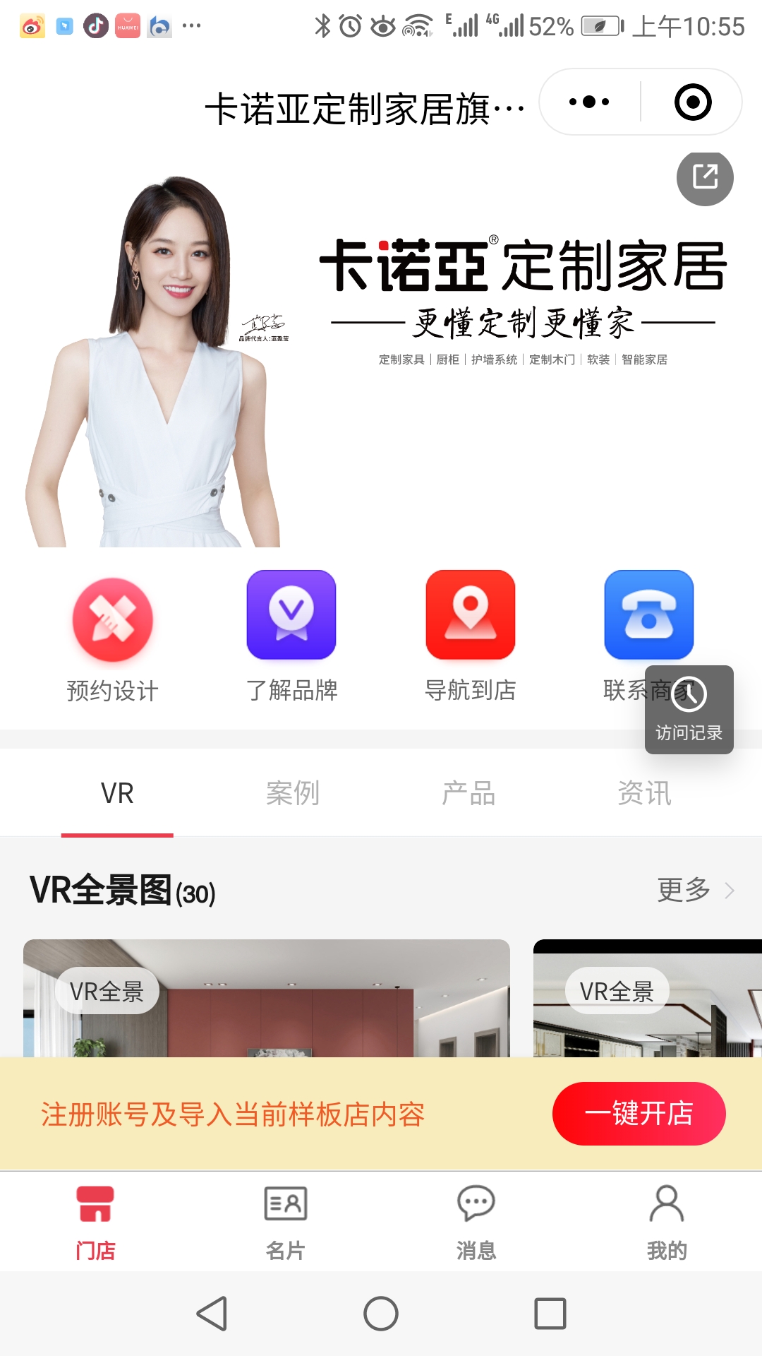 新零售線上卡諾亞定制家居數字門店,依托于菠蘿家獲客寶小程序和美家幫手小程序系統,實現用戶掃碼,即可線上逛店。