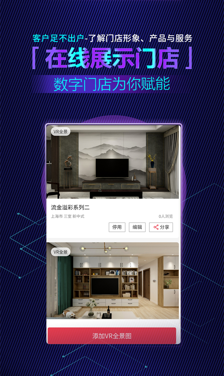 2020年疫情沖擊之下,很多企業、商場都停擺了,整個大街也很冷清。但是眾多已實施數字門店的企業和賣場,甚至是經銷商,都受益匪淺。我們回顧一下2003年的非典,由于大家都不敢出門,所以當時劉強東把中關村的實體店搬到了線上,成就了今天的京東。要為自己提前做準備,要有前瞻性的眼光,早改變早受益,卡諾亞定制家居看到了C端家裝依然旺盛的需求,順勢而為,搭建數字門店,助力線下實體店快速轉型,輕松引流裂變獲客。