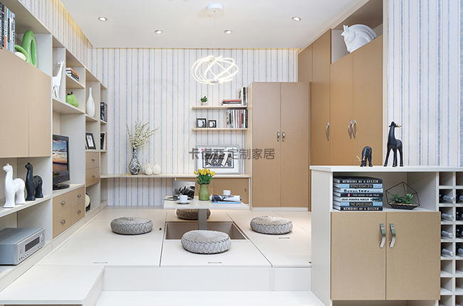 榻榻米一直以來都是作為休閑家具,我們常在電視里看到的韓國或者是日本的榻榻米,都是見休閑、睡覺于一體的。而在中國,臥榻榻榻米一般設置在次臥或者書房,可以當成床來使用。定制也比較簡單,一般是定制大面積的一體柜,下面用來儲物,上面可以鋪被褥,用來休息。這也是很多小戶型用戶比較喜歡的款式。